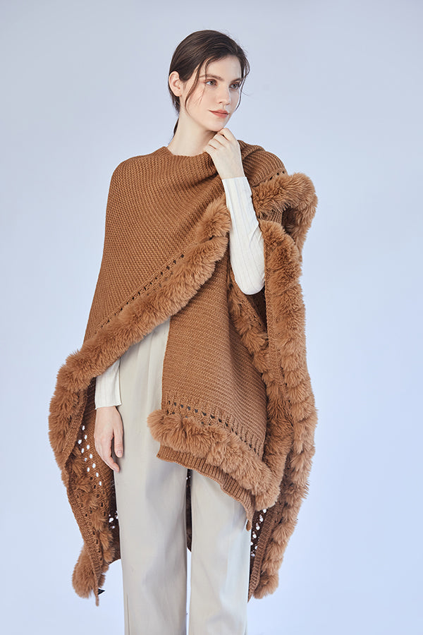 FennySun Women Knitted Fabric Artificial Fur Soft Warm Shawl